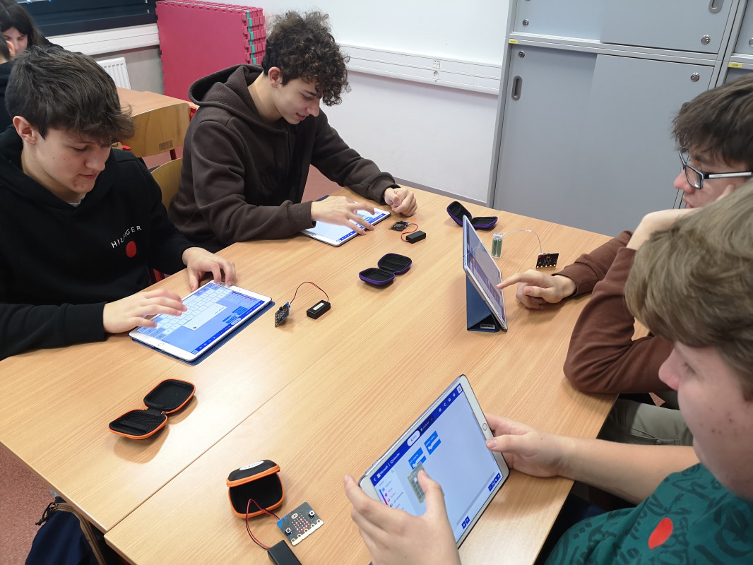 Zúčastnili jsme se i vzdělávacího programu MICRO:BIT. Mohli jsme si vyzkoušet práci s microbity a dozvěděli jsme se něco i robotice. Byli nám představeni různí roboti a také jsme si vyzkoušeli programování a ovládání robotů pomocí malých robotických sad a tabletů.
